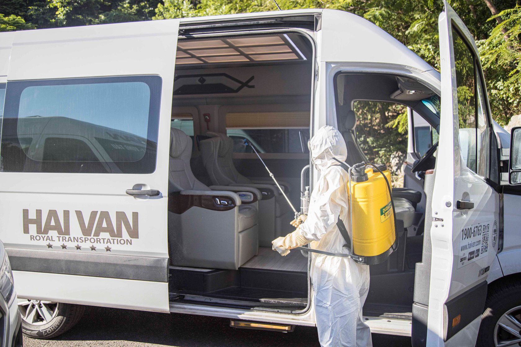 Thực hiện theo công văn số 7886/UBND-VP của UBND Tỉnh BRVT về việc tăng cường các biện pháp phòng, chống dịch bệnh Covid-19 kể từ ngày 3.8.2020 Hải Vân Vũng Tàu tiến hành khử khuẩn các dòng xe Limousine 9 và 18 chỗ phục vụ hành khách tuyến Vũng Tàu ↔ Q. 1, TPHCM và Vũng Tàu ↔ Sân Bay với tần suất 30 phút/ chuyến.